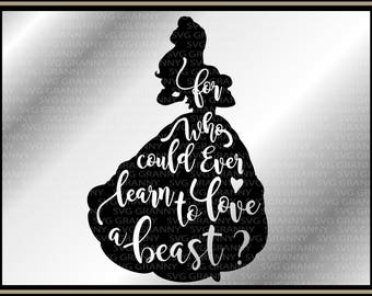 This purchase is for a single (black and white) image of belle in beauty and the beast disney silhouette svg and dxf | etsy.
